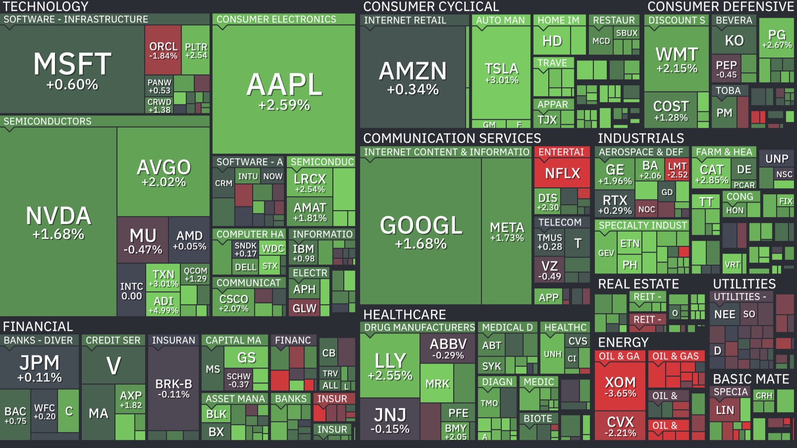• S&P 500: 7,126.06 (▲1.20%, 사상 첫 7,100선 돌파)